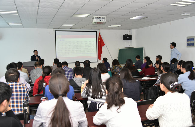 他强调,党的十九大,是在全面建成小康社会决胜阶段、中国特色社会主义进入新时代的关键时期召开的一次十分重要的大会。这是新时代、新要求、新目标、新作为的指导思想、行动指南和行动纲领。学习好宣传好落实好习近平总书记报告和十九大精神是当前和今后一个时期的一项重要政治任务。每一名党员和每一个师生都必须坚持和遵循。深刻领会党的十九大的主题,深刻领会习近平新时代中国特色社会主义思想的历史地位和丰富内涵,深刻领会党的十八大以来党和国家事业发生的历史性变革,深刻领会中国特色社会主义进入了新时代,深刻领会我国社会主要矛盾的变化,深刻领会新时代中国共产党的历史使命,深刻领会实现第一个百年奋斗目标和向第二个百年奋斗目标进军,深刻领会社会主义经济建设、政治建设、文化建设、社会建设、生态文明建设等方面的重大部署,深刻领会国防和军队建设、港澳台工作、外交工作的重大部署,深刻领会坚定不移全面从严治党的重大部署。切实用党的十九大精神领航我们的工作、学习和生活。