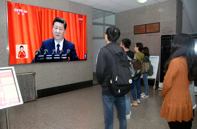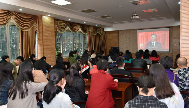 环境刮刮卡 师生党员集中收看十九大开幕会