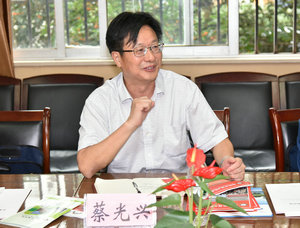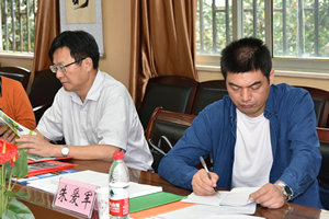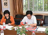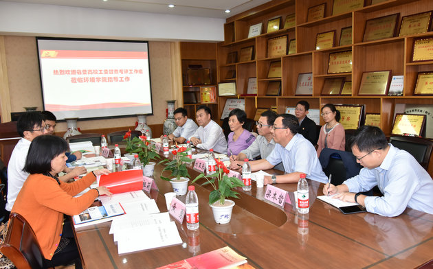 朱勤文与督查组交流,并肯定环境刮刮卡 党建工作的做法及成效。