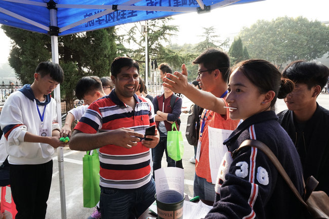 留学生参与“低碳校园”科普体验日