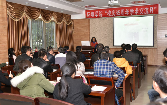 “校庆65周年学术交流月”活动基本情况,并做了《鄂西洞穴系统地质微生物的时空分布及其古环境意义》的学术报告。