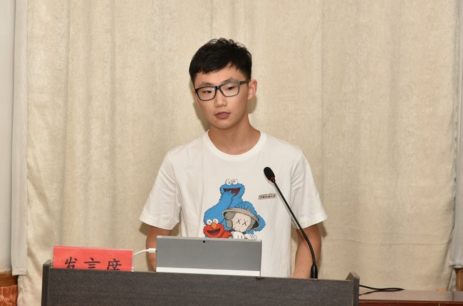 新生代表刘自旻发言。他讲述了自己选择环境刮刮卡 地下水科学与工程专业的初心,表达了努力学习,努力奋斗,争做担当民族复兴大任的时代新人的决心。