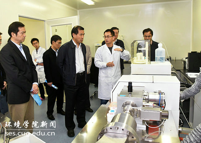 ;  宇如聪一行到生物地质与环境地质国家重点实验室调研,现场考察实验室有机分析平台、同位素分析平台、分子地球生物学平台等大型仪器设备,实验室副主任谢树成教授汇报了实验室建设目标定位、研究方向及取得的标志性成果。宇如聪表示,实验室的高水平研究成果对于气象学研究具有重要意义,希望实验室在保持传统优势领域的同时,努力发挥学科交叉优势,开展原创性高水平研究,多产出高水平研究成果。