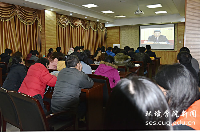 党委组织师生在文华楼205报告厅集中收看收听。
