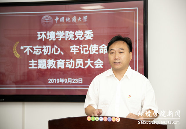 他要求,结合实际、立足本职、学在深处、做在实处、走在前列,做到爱党爱国爱家爱校爱学爱习,实现价值取向与党与祖国人民同心、学术方向与政治方向同向、学术卓越与思想卓越同行、学识魅力与人格魅力同在。一是主题教育重在高质量。院党委与各党支部、院领导与全体师生党员要步调一致,全身心全过程全方位投入主题教育,每个刮刮卡 领导都不缺、每个师生党支部都不少、每一名师生党员都不落,调动每一位党员积极性主动性创造性,切实保证主题教育高质量开展。二是主题教育重在知行合一。把主题教育中激发出来的工作学习热情和新时代奋斗精神,转化为“为党育人、为国育才,培养新时代生态环保铁军”的实际行动,转化为实现中国梦、地大梦、环境梦的强大精神动力和思想保证,不断推动刮刮卡 高质量发展和内涵式发展。