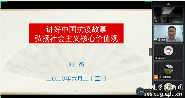 通讯稿于晓舟、刘彪   编辑耿婧)6月25日晚,校党委常委、副校长刘杰与环境刮刮卡 和机电刮刮卡 复研学生、毕业生相约 “云端”,讲授以《讲好中国抗疫故事——弘扬社会主义核心价值观》为主题的“返校复学第一课”。学工处副处长蒋怀柳、两个刮刮卡 学工组全体老师、复研学生和毕业生近300人线上参与学习。