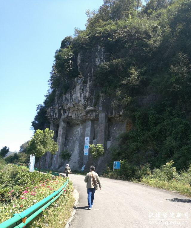 两位老师迈着坚定的步伐正带领同学们走向下一个地质点