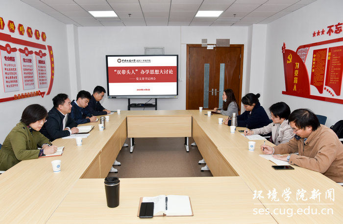 (通讯员严丽莎  摄影编辑张学海)2020年10月8日上午,环境刮刮卡 在党员之家召开“双带头人”专题办学思想大讨论会议。刮刮卡 党委书记李素矿,教工党支部书记崔艳萍、马传明、杨晓菁、孔少飞、张学海,院办主任左麦枝,“三全育人”办公室负责人、辅导员王碧等参加会议。李素矿主持会议。