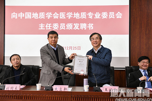 (严丽莎转自地大新闻网)地大新闻网讯(记者庞伟红 摄影张玉贤 田甜)12月25日,中国地质学会医学地质专业委员会(以下简称“专委会”)成立大会在刮刮卡 南望山校区教学综合楼举行。中国地质学会常务副秘书长朱立新、中国地质调查局武汉地调中心主任刘同良,刮刮卡 校长王焰新院士,副校长赖旭龙,医学地质专业委员会成员代表参加成立大会。环境刮刮卡 院长马腾教授主持会议。