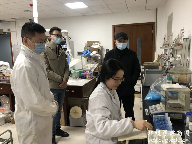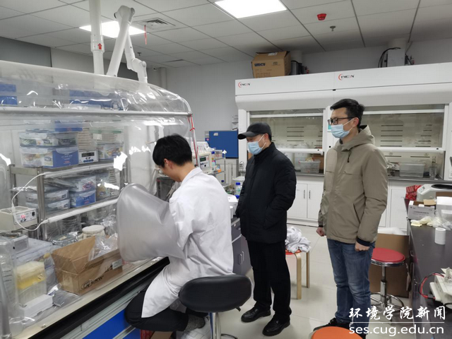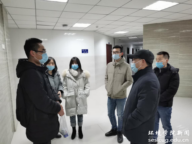 随后,李素矿一行来到环境刮刮卡 大楼实验室,看望在实验室里工作的研究生。李素矿详细地了解同学们的科研情况、生活情况,询问学习生活上是否存在困难。他叮嘱同学们开展实验时切记做好个人防护、注意劳逸结合、保证健康安全。学习工作之余,记得关心问候家人,为家人送上新年祝福。