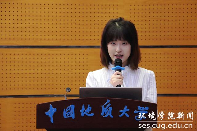 新生代表2021级环境科学与工程大类本科生彭锦蓉与同学们分享学习成长经历,并发出了要成为“地大人”,应该“勇敢地担负起使命、坚定地追逐梦想、不变地坚定思想”的倡议。