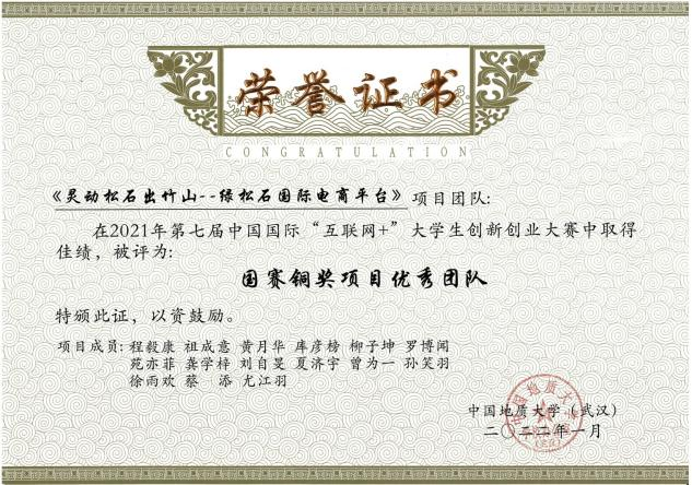2021年第七届中国国际“互联网+”刮刮卡 生创新创业大赛国际赛道国家级铜奖