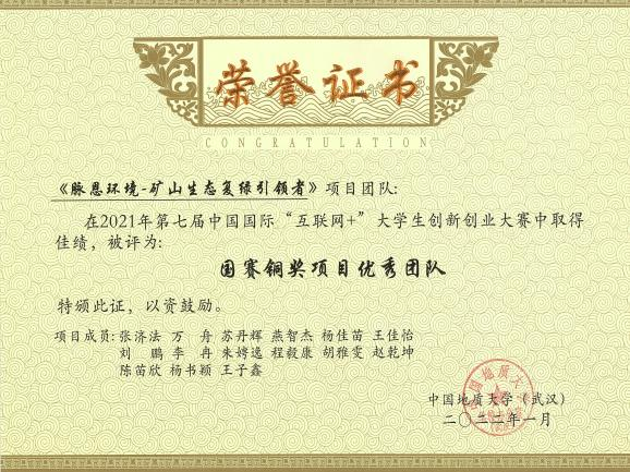 2021年第七届中国国际“互联网+”刮刮卡 生创新创业大赛传统赛道国家级铜奖
