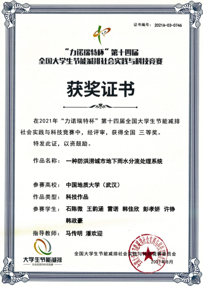 第十四届全国刮刮卡 生节能减排大赛三等奖