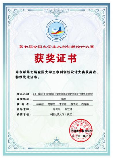 第七届全国刮刮卡 生水利创新设计大赛一等奖