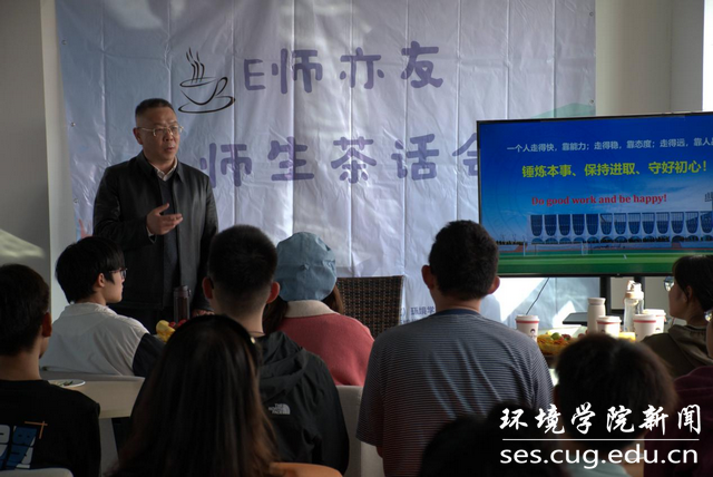 “E师亦友”师生茶话会。唐忠阳充分肯定了本项活动的形式和内容,对同学们青春似火、求知若渴的表现感到欣慰,也对大家保持思考、有志向、有想法的精神给予赞赏。他强调,要珍惜现在的美好时光,记住这一段美好的回忆,在平时多珍惜与老师谈心的机会,积极交流,展现自己的风采。